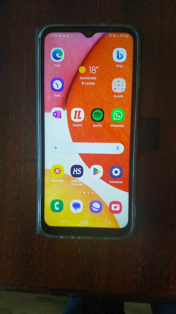 Tämä on halpa älypuhelin. Ohjehinta noin 250 euroa, tarjouksessa 199 euroa. Galaxy täyttää kaikki tavalliset tarpeet, ja kamera on riittävän hyvä. Puhelimen ei tarvitse olla huippua. Niihin saa kyllä kulumaan rahaa enemmänkin.