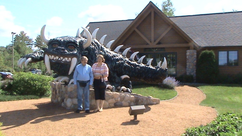 Amerikan Wisconsinissa on Rhinelandin kaupunki ja siellä matkailumainoksena tämä Rhinelandin hirviö. Olen sen edessä serkkuni Anja Hjeltin kanssa. Anja on Helena Hataran (os. Pärnänen) tytär. Anja ja miehensä Kari asuivat vielä 2008 Rhineladissa. Heillä on kaksi lasta, poika ja tyttö. Brian asuu Minnesotassa Minneapoliksessa ja on töissä vakuutusyhtiössä. Tytär Tina asuu jossain Kaliforniassa. Kari oli töissä myyjänä teräksiä myyvässä tukkuliikkeessä. Anja on ollut ompelija ja tehnyt yksityisille pukuja. Molemmat ovat eläkkeellä.