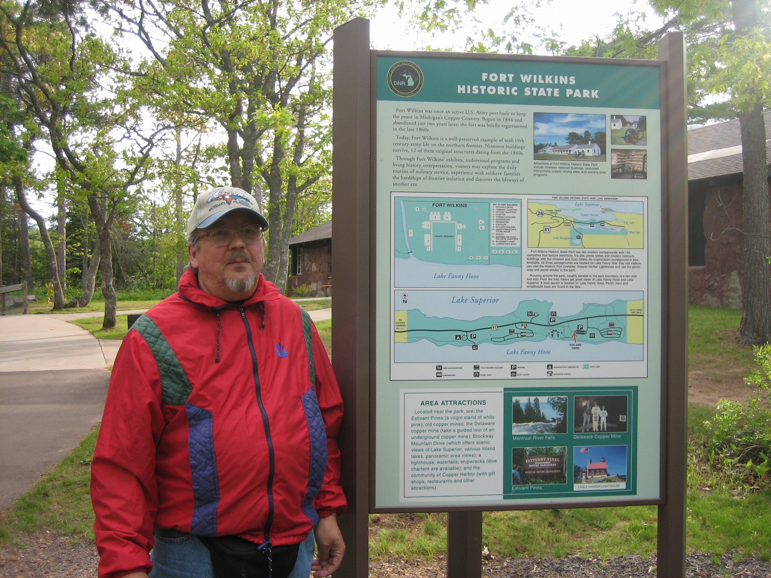 Minä ja serkkuni Liisa Kytola Pohjois-Michiganissa Lake Superior järven läntisessä niemessä Upper Peninsulassa Copper Harborissa. Niemessä on ollut joskus 1800-luvulla ja 1900-luvun alussa kuparikaivos. Sieltä on viety kuparimalmia laivoilla itään sulattamoon. Nyt 2008 alue oli museoitu ja entisestä kylästä Fort Wilkins tehty turistikohde.