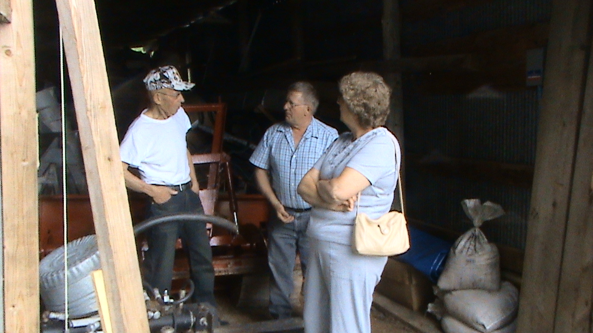 Liisa, Dennis ja vanha mies lumilingon kaupan teossa. Vanha mies oli noin 80-vuotias.