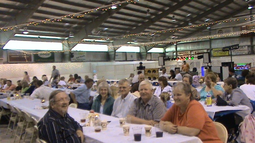 Suomensukuisia vieraita hääjuhlassa. Tilaisuus oli järjestetty jäähallissa, ja vieraita oli noin 300.