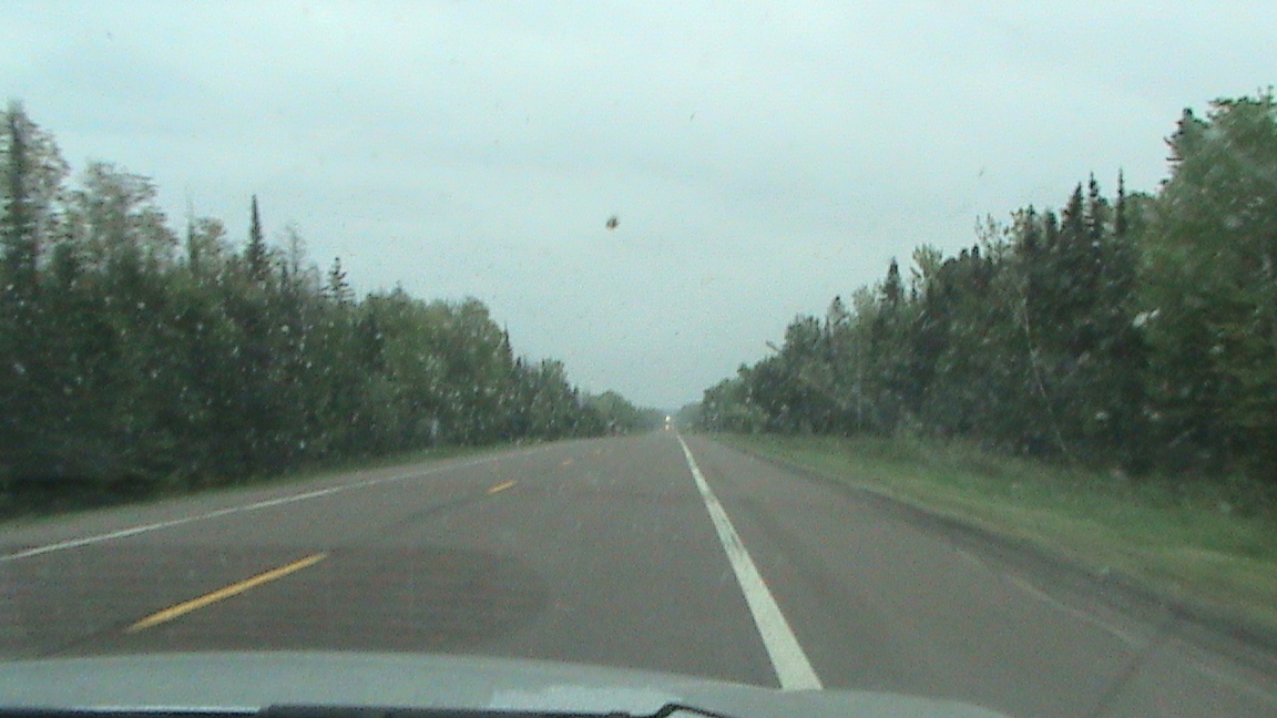Michigan Highway M 28 Idästä länteen. Tie oli suora, eikä mäkiä ollut. Lähellä Marquettea tien pohja oli betonilaattaa, jota rakennettiin toisen maailmansodan jälkeen. Siellä oli tietöitä ja laattoja oltiin poistamassa.