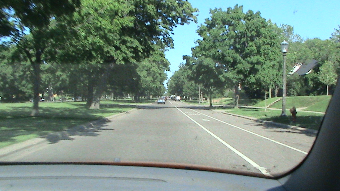 Minneapoliksessa oli oivallus laittaa pyörätie kaistojen väliin. Ilmeisesti oikean puoleinen kaista oli kääntymistä ja pysäköintiä varten.