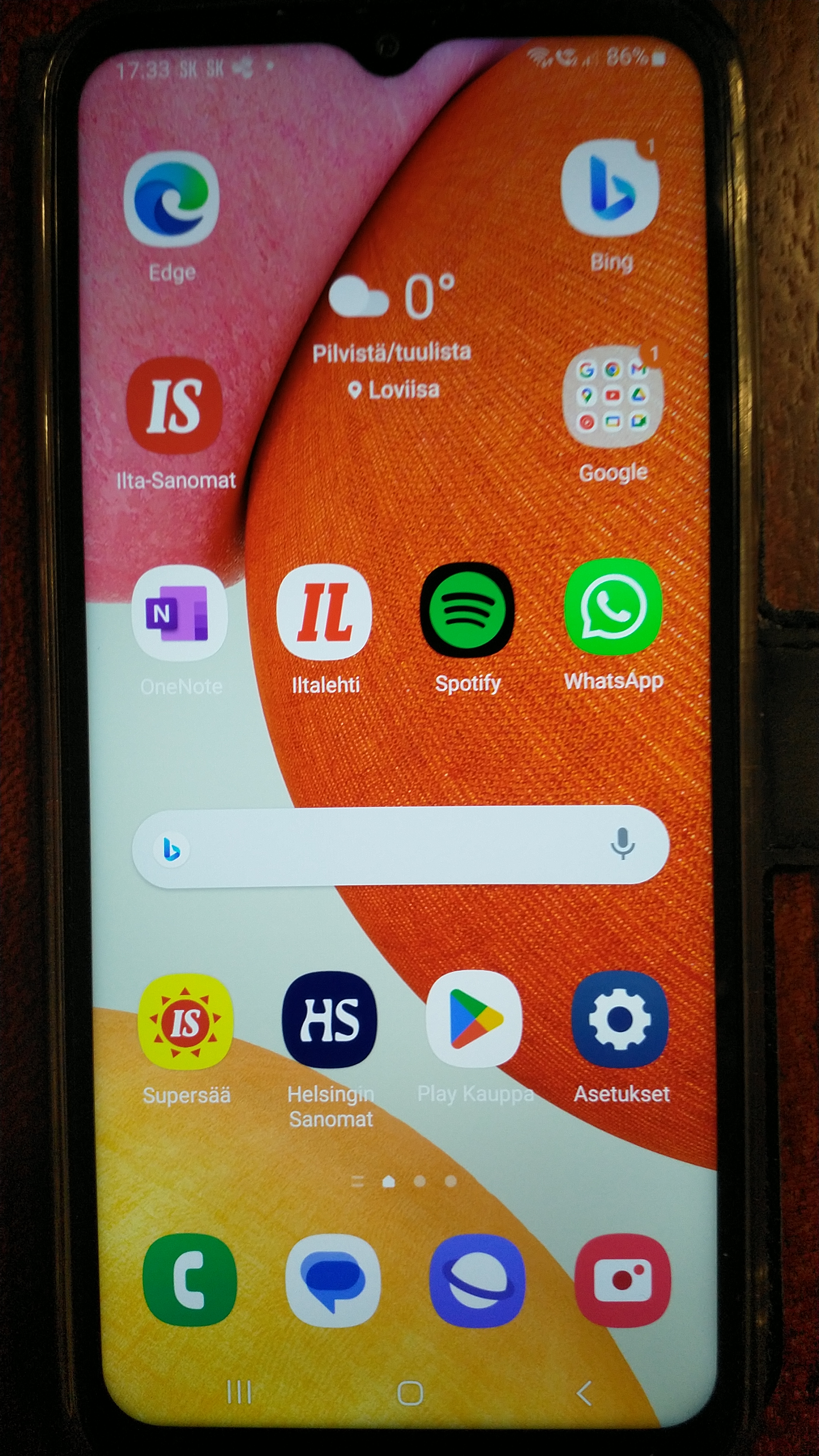 Nokia 1 puhelin. Ystäväni Matti otti syksyllä tähän puhelimeen Multi SIM kortin samalle numerolle kuin hänen peruspuhelimensa on. Hän aloitti älypuhelimen käytön 71-vuotiaana. Häntä täytyy neuvoa etänä puhelimessa. Hän etsii tietoja ja selaa verkkoa ja lukee lehtiä. Hän soittaa peruspuhelimella, eikä hänellä ole luottokorttia eikä pankkitunnuksia. Se on aloittelevalle käyttäjälle turvallisuuskysymys.