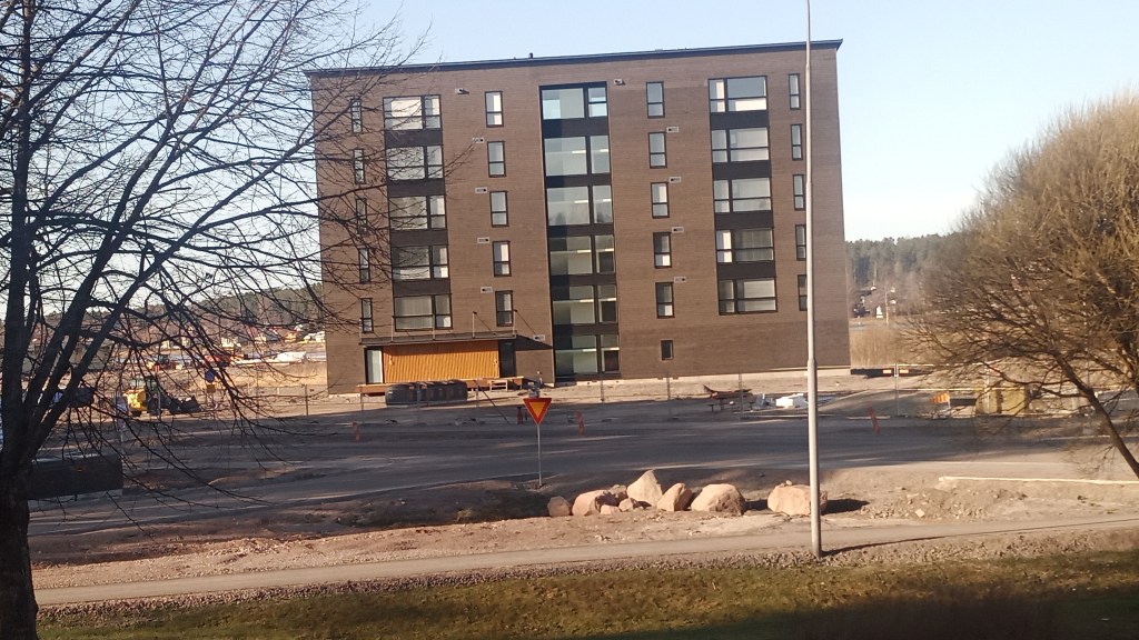 Heinä – elokuussa olivat asuntomessut. Kuvassa messujen ainoa kerrostalo, joka on tehty puusta. Se koottiin elementeistä. Talo näkyy ikkunastani, ja seurasin sen rakentamista vuosien 2022 ja 2023 aikana. Sukulaisiani kävi messujen aikaan ja käytiin myös tyttärelläni kylässä. Olin tavannut veljeäni ennen viime kesää viimeksi vuonna 2018. Vuoden uusi tuttavuus oli serkkuni. En päässyt messuille kävelemään, koska lonkkani oli kipeä. Ostin lipun ja sain kännykkään virtuaalimessut.