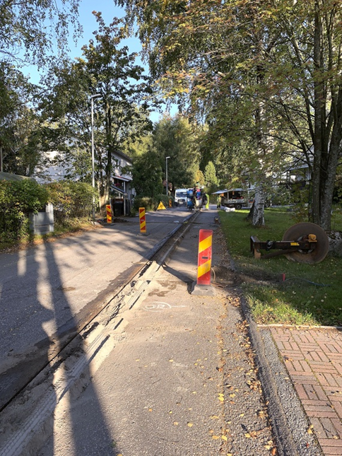Kevyempi asennustapa. Valokuidun asennuksessa on aiemmin käytetty myös mikrosahaukseksi kutsuttua tekniikkaa. Siinä katuun sahataan noin 40 sentin syvyinen kapea ura, johon kuituputki upotetaan. Sahaus on paljon nopeampi ja edullisempi tapa asentaa kuitu kuin kadun avaaminen perinteisesti kaivurilla, mutta kunnallistekniikan kannalta muista kaapeleista erillään kulkeva kuitu on hankala. Siksi esimerkiksi Helsinki ei anna enää uusia lupia kuidun mikrosahausasennuksiin. Kuva on vuodelta 2019. ALEKSI VÄHIMAA