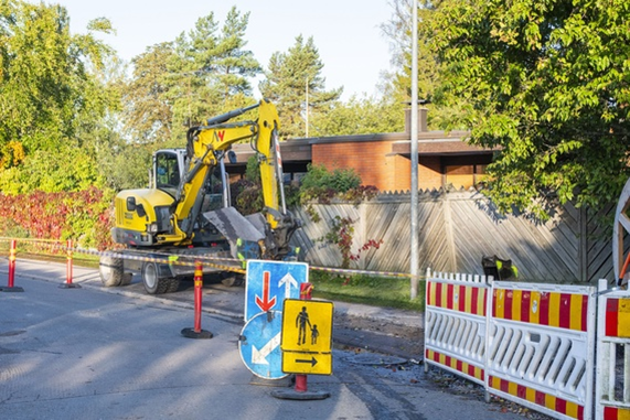 Kaivuuhommia. Elisan valokuitutyömaalla Helsingin Heikinlaaksossa tarvitaan kaivinkonetta ja ajoittain lapiotakin. ALEKSI VÄHIMAA