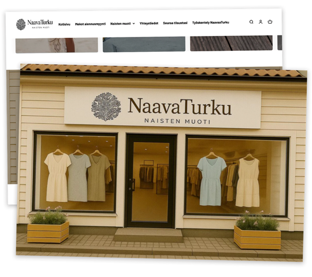 NaavaTurun kotisivulla on kuva kivijalkaliikkeestä. Se vaikuttaa tekoälyn luomalta. Valon suunta ja heijastukset ikkunassa eivät näytä luontevilta.