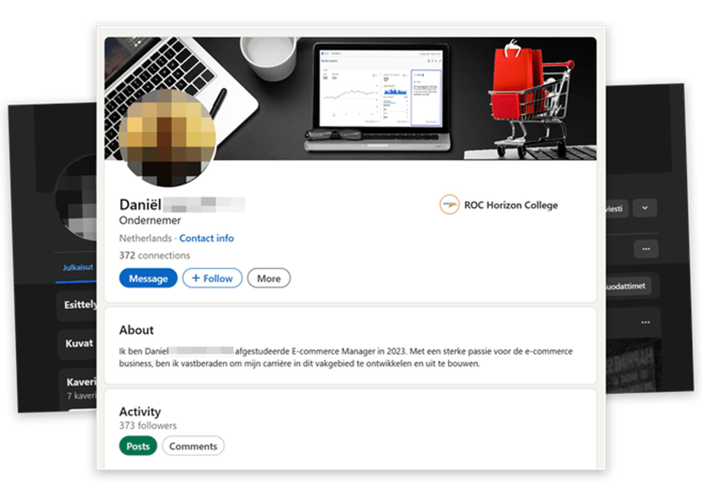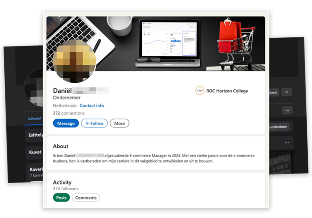 ”Minulla on vahva intohimo verkkokauppaliiketoimintaan ja olen päättäväinen kehittämään ja rakentamaan uraani tällä alalla”, hän kuvailee itseään LinkedInissä.