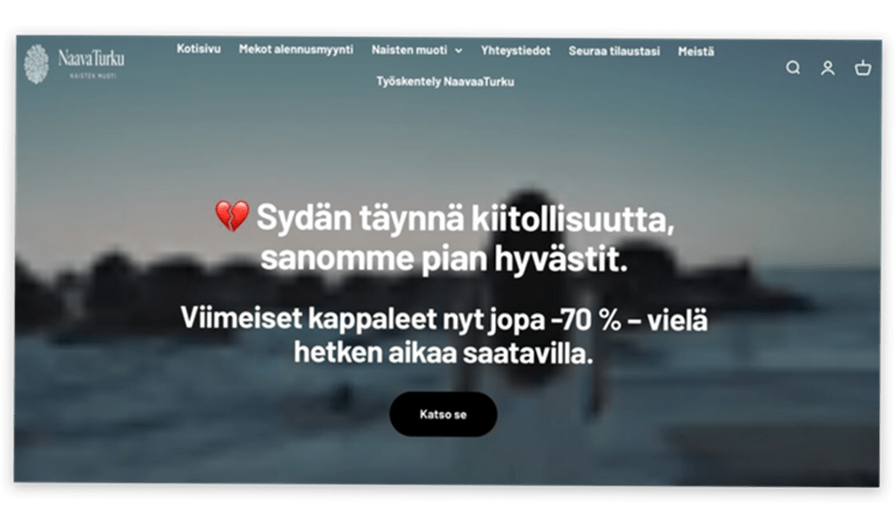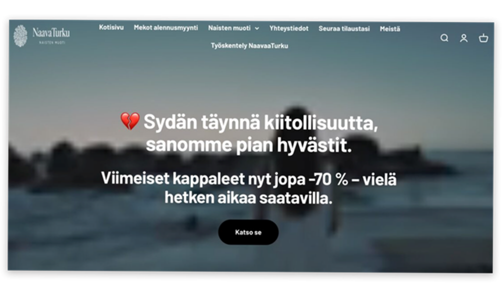 ”Turun myymälämme on suljettu, koska keskitymme verkkopalvelumme kehittämiseen.”