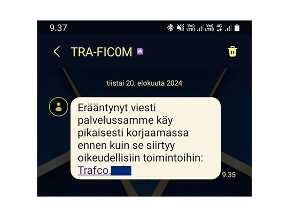 Liikenne- ja viestintävirasto Traficomin Kyberturvallisuuskeskus varoittaa Traficomin nimissä jälleen liikkuvista huijausviesteistä.